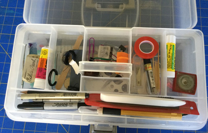 Back to my toolbox. You can see two trays and the bottom of the box. This is an unedited view of my unorganized box where I know where everything is!!! Can you figure out what everything is ????
